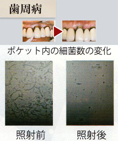 ネオジミウムヤグレーザー(Nd:YAGレーザー)の照射により、レーザー光が患部表面を透過して組織内へ到達することにより、