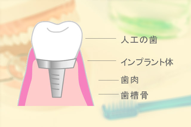 ブリッジや入れ歯と異なり周囲の歯に負担をかけることもなく、見た目はほとんど自分の歯と区別がつきません。
