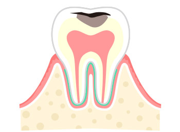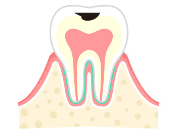 虫歯は、細菌が作る酸によって、歯が溶かされる病気です。細菌によって歯が溶かされることを「脱灰」と言い、溶かされた歯を修復する働きを「再石灰化」と言いますが、この「脱灰」と「再石灰化」のバランスが崩れることによって、虫歯が発生してしまいます。 最初は歯の表面(エナメル質)で生じた虫歯も、進行するにつれてどんどん歯の奥へと進行してしまいます。進行すると神経の治療(根管治療)が必要になり、重度になると抜歯が必要になってしまいます。