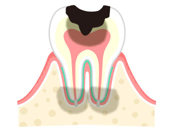 虫歯が進行して歯根部分にまで炎症が達してしまうと、根管治療が必要になります。重度になると、炎症は歯根だけでなく、歯を支える骨にも悪影響を及ぼします。自覚症状がない場合もあるため、注意が必要です。